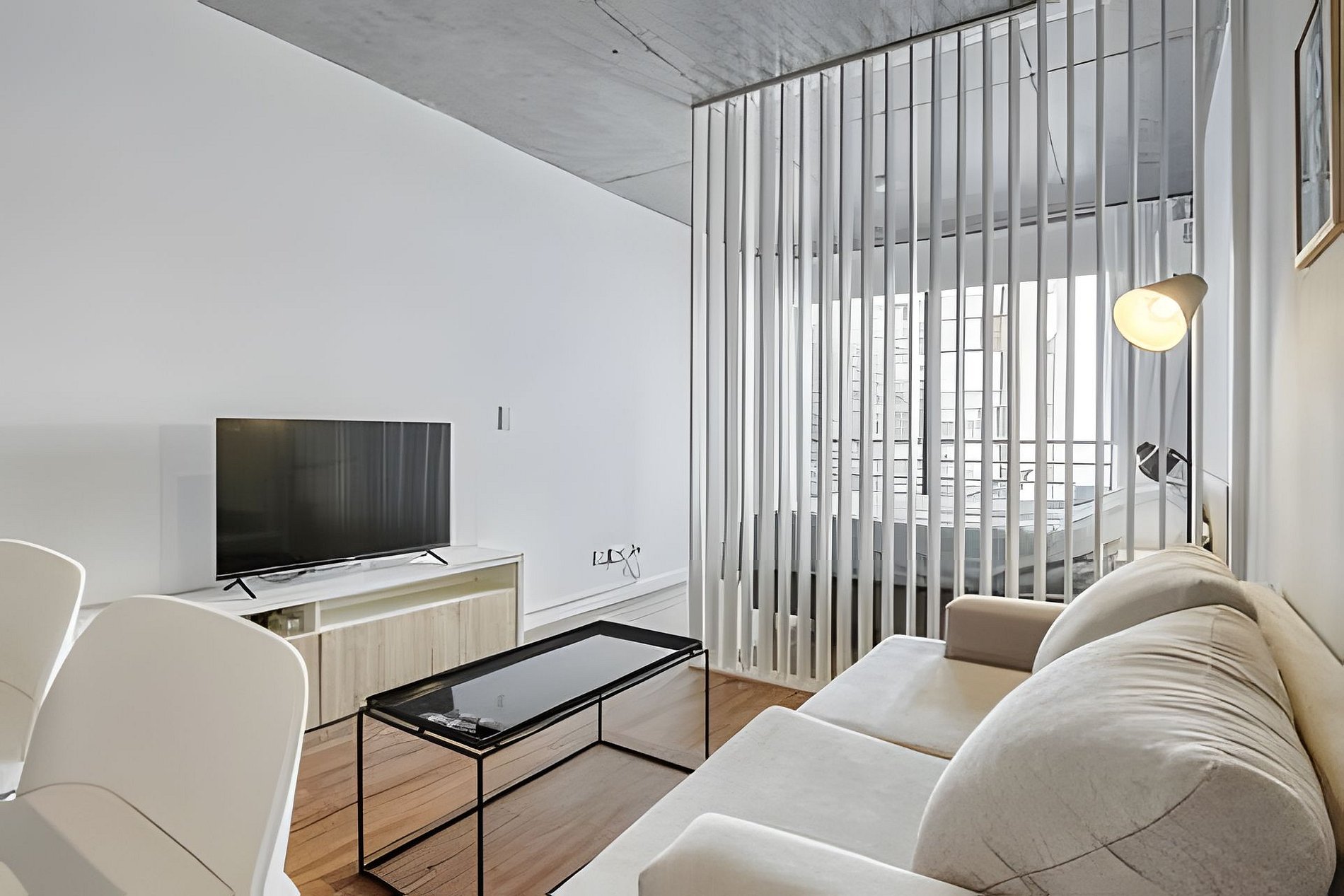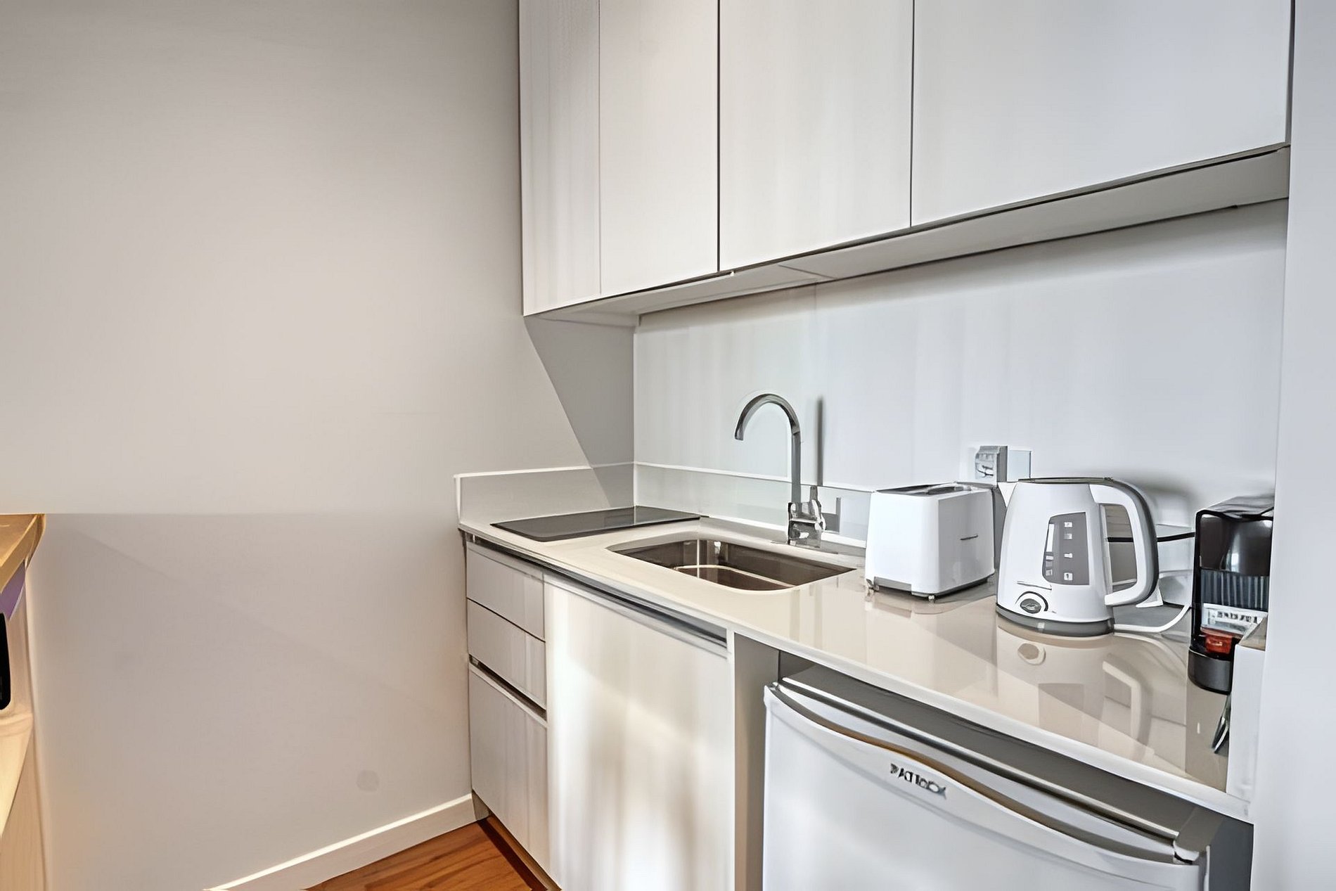Monoambiente con kitchenette, microondas, cafetera Nespresso, tostadora, set de cacerolas para cocinar, vajilla para 4 personas. 1 cama matrimonial y un sillón cama que se hace matrimonial con un ancho de 1,50. Departamento cómodo para 3 personas aunque si hay niños, pueden acomodarse 4 personas. Secador de Pelo que se encuentra amurado en la pared del baño.