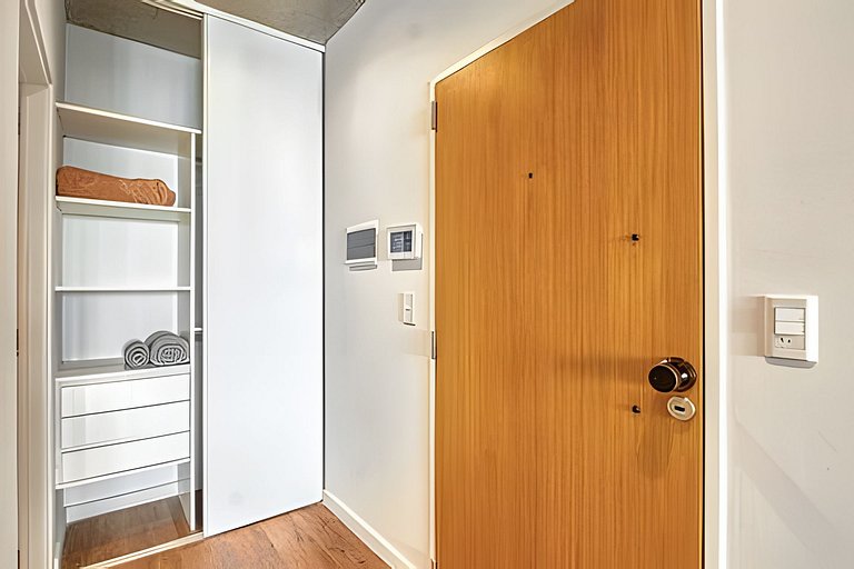 Monoambiente con kitchenette, microondas, cafetera Nespresso, tostadora, set de cacerolas para cocinar, vajilla para 4 personas. 1 cama matrimonial y un sillón cama que se hace matrimonial con un ancho de 1,50. Departamento cómodo para 3 personas aunque si hay niños, pueden acomodarse 4 personas. Secador de Pelo que se encuentra amurado en la pared del baño.