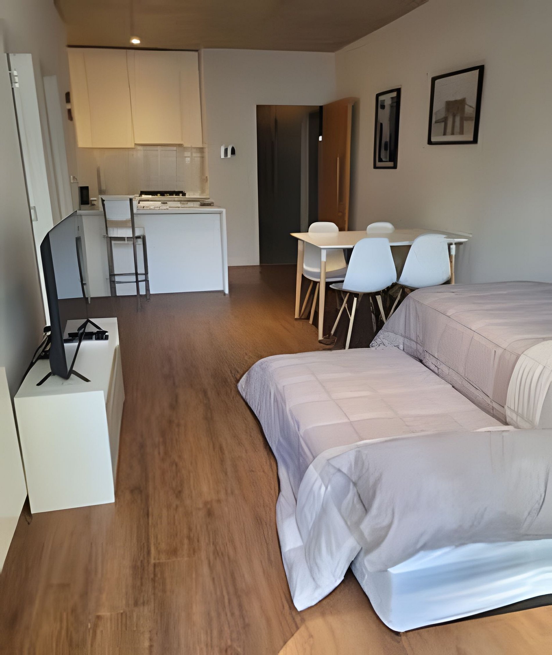 Departamento de 2 ambientes con capacidad para 4 personas. Cuenta con cocina completa, microondas, cafetera Nespresso, tostadora, set de cacerolas para cocinar, vajilla para 4 personas. Dormitorio principal con 1 cama queen de 1,90x1,60 con baño en suite. El living cuenta con un sofá cama para 2 personas. Son 2 camas individuales Cocina equipada para 4 húespedes. El departamento cuenta con wifi de 100 megas y televisión por cable. Secador de Pelo que se encuentra amurado en la pared del baño principal. Cochera en el edificio usd 15 por día. ( Consultar disponibilidad)
