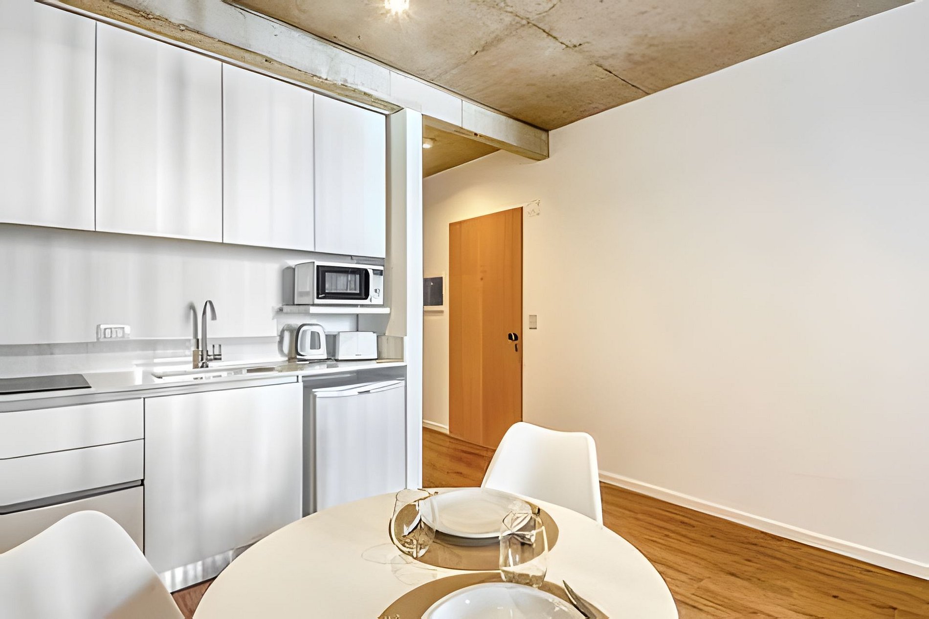 Departamento Monoambiente, perfecto para 2 personas. Una cama matrimonial de 1,90 x 1,60. O se pueden armar 2 camas individuales. Cocina equipada para 2 personas. Monoambiente con kitchenette, microondas, cafetera Nespresso, tostadora, set de cacerolas para cocinar, vajilla para 2 personas.