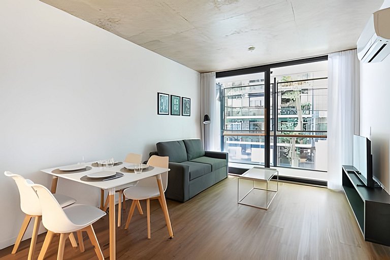 Tiene un cowork en el ultimo piso, es un espacio diseñado específicamente para trabajar de manera cómoda y armoniosa. ACLARACION: INTERNET 1 TB ( LA VELOCIDAD MAS RAPIDA). El edificio cuenta con un espacio de LAUNDRY con lavarropa y secarropa que funcionan con fichas con costo las cuales se consiguen en el Super Chino La dirección es CUBA 2581.