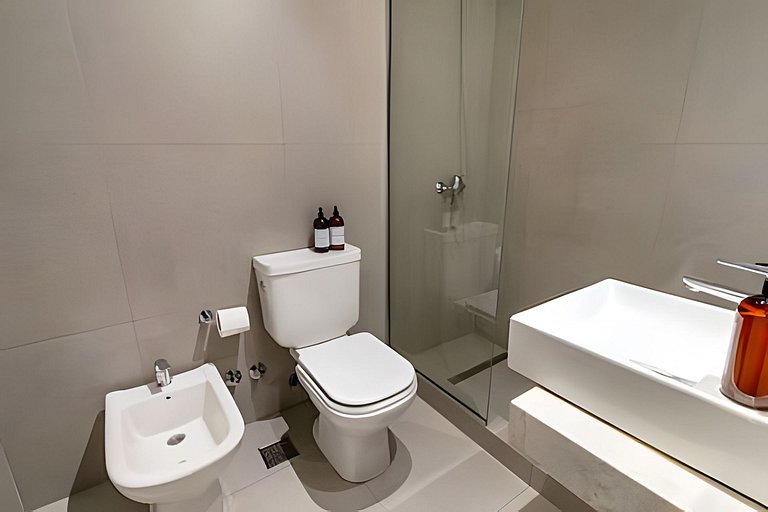 El depto cuenta con Shampoo, Acondicionador, gel de ducha, toallas, sábanas y almohadas. Jabón Liquido para lavar Ropa. Secador de pelo que se encuentra amurado en la pared del baño.