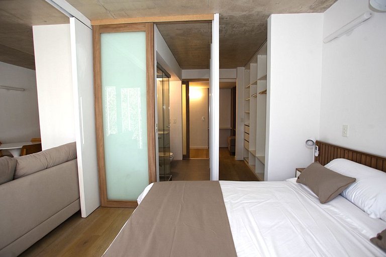 Dormitorio principal con 1 cama queen de 1,90x1,80 con baño en suite.