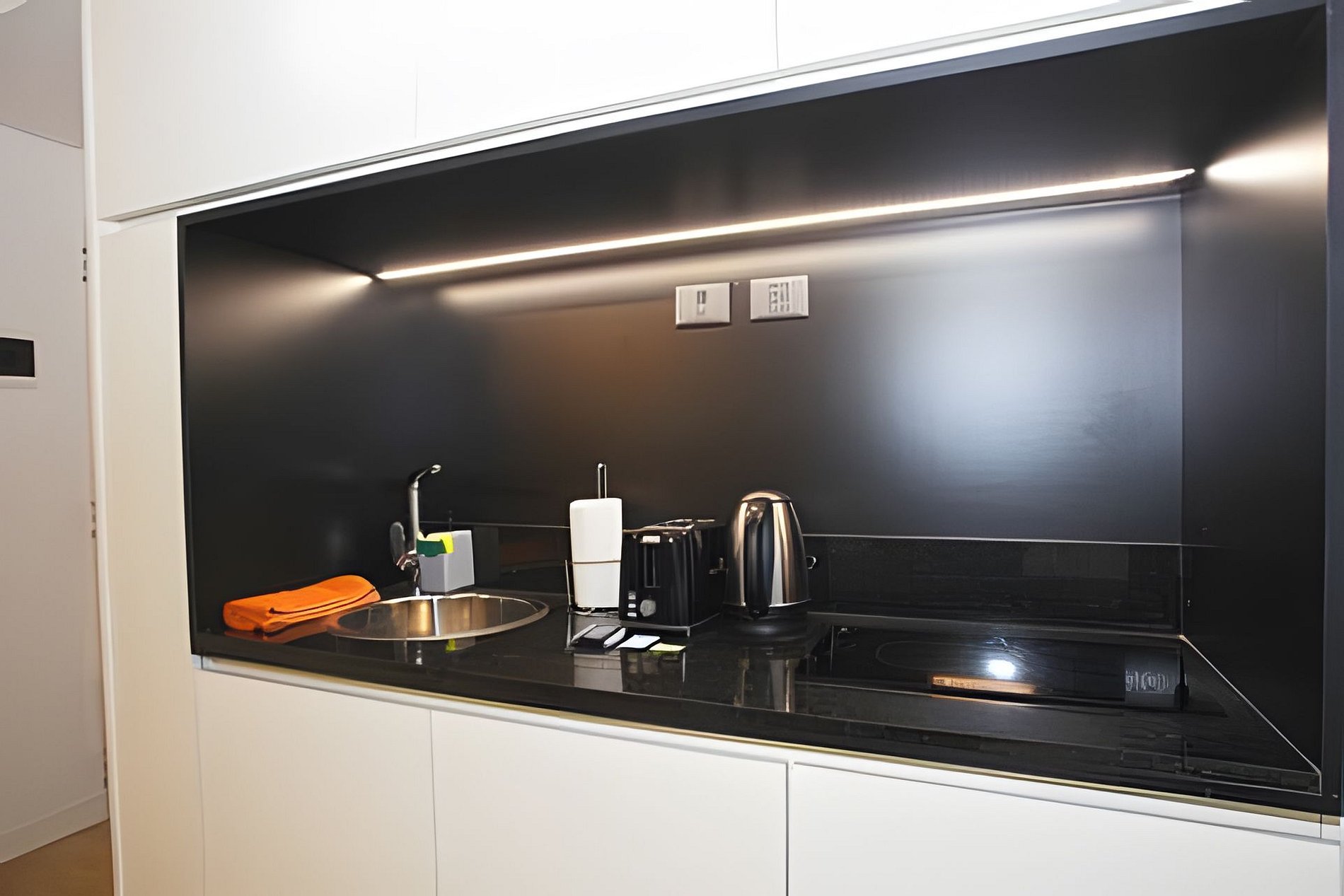 Similar a una habitación de hotel, pero con la opción de poder cocinar.